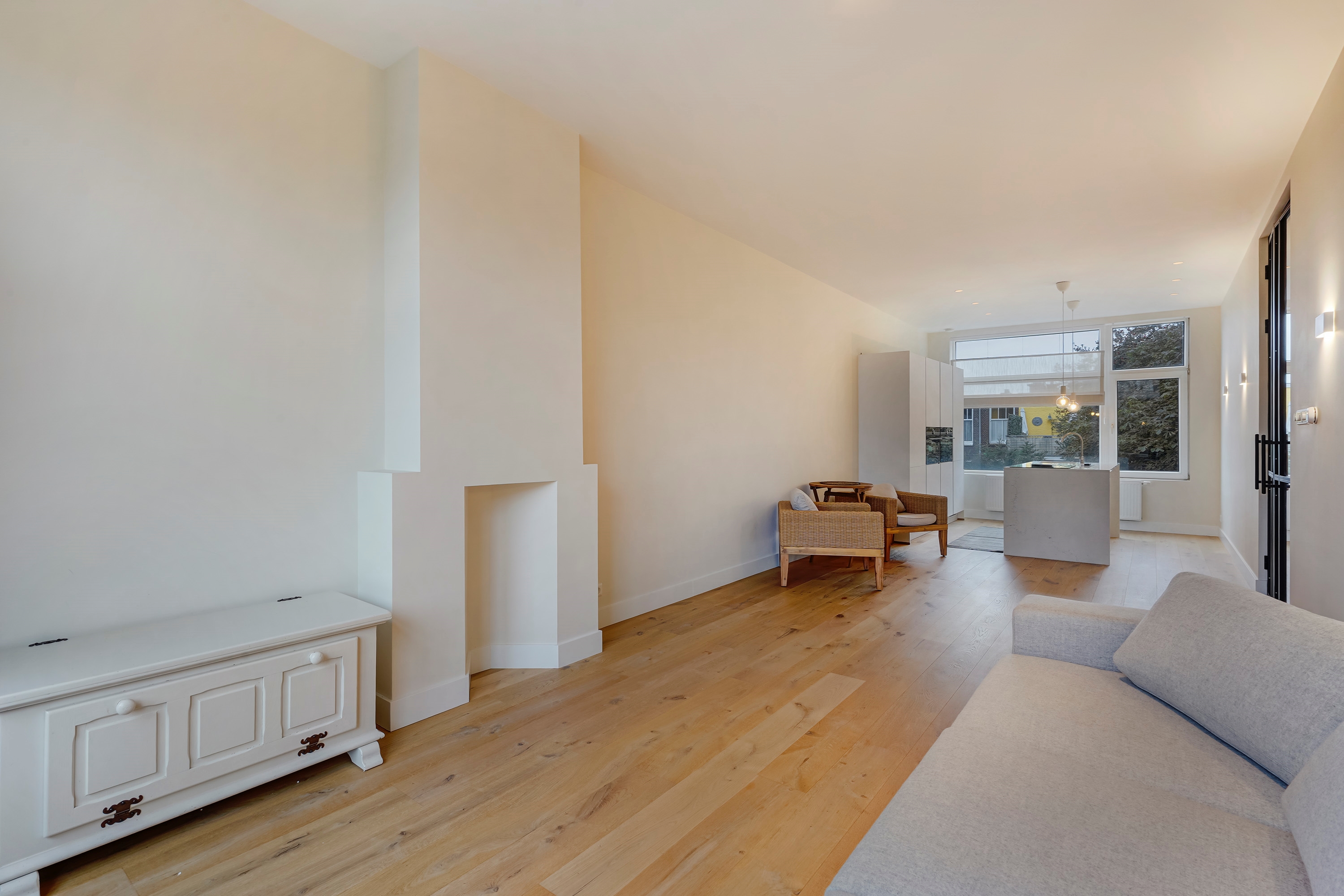 Dit turnkey appartement beschikt over een grote woonkamer aan de voorzijde, een moderne open keuken aan de achterzijde met veel inbouwapparatuur , 3 slaapkamers, en een nieuwe badkamer. De woning is geheel voorzien van kunststof kozijnen met dubbel glas, nieuwe leidingen (gas, water en elektra) en een fraaie houten vloer. Het appartement heeft energielabel A.