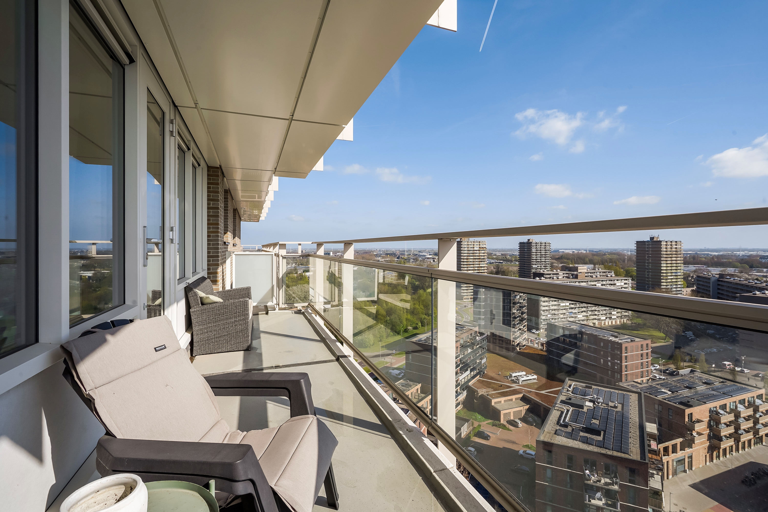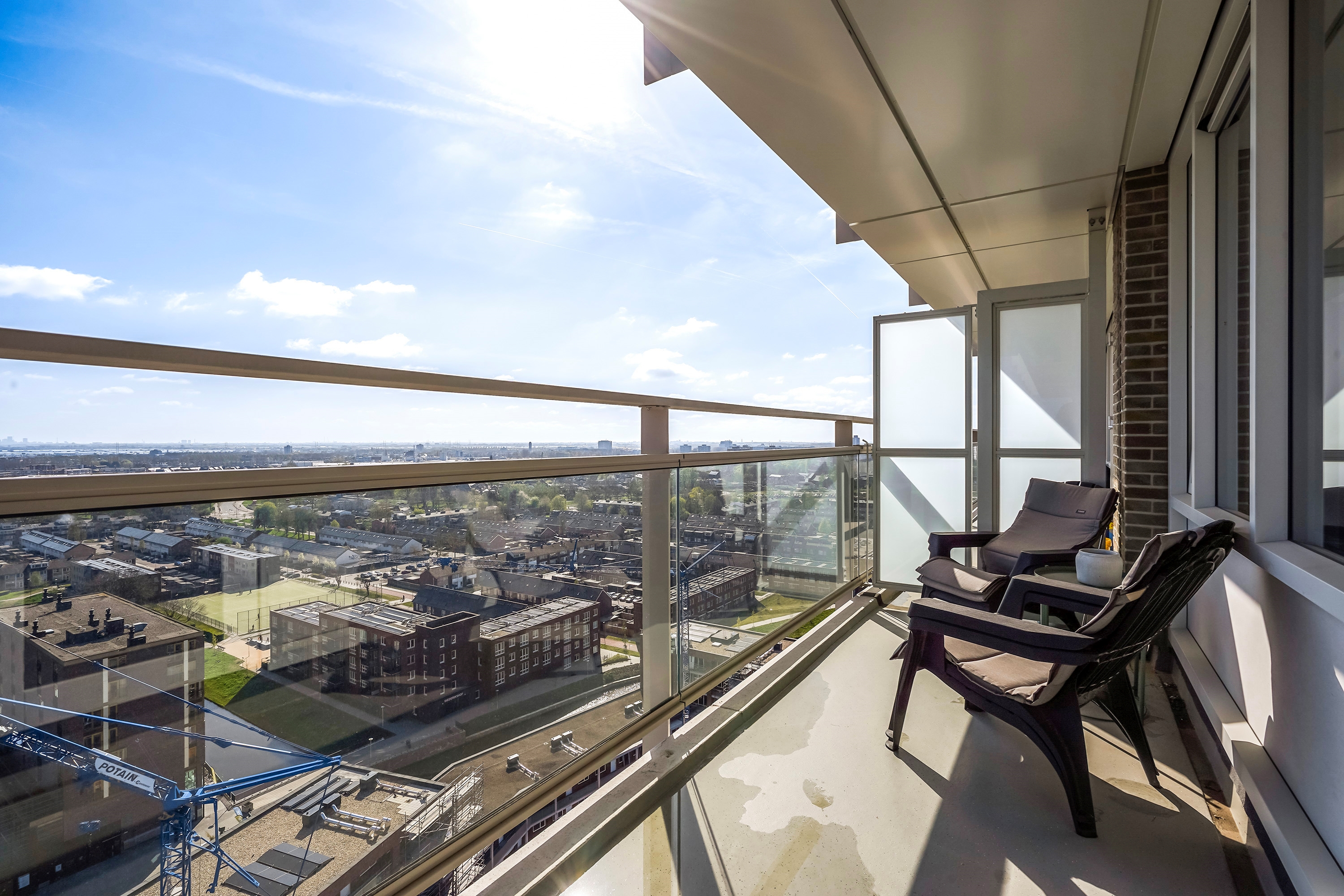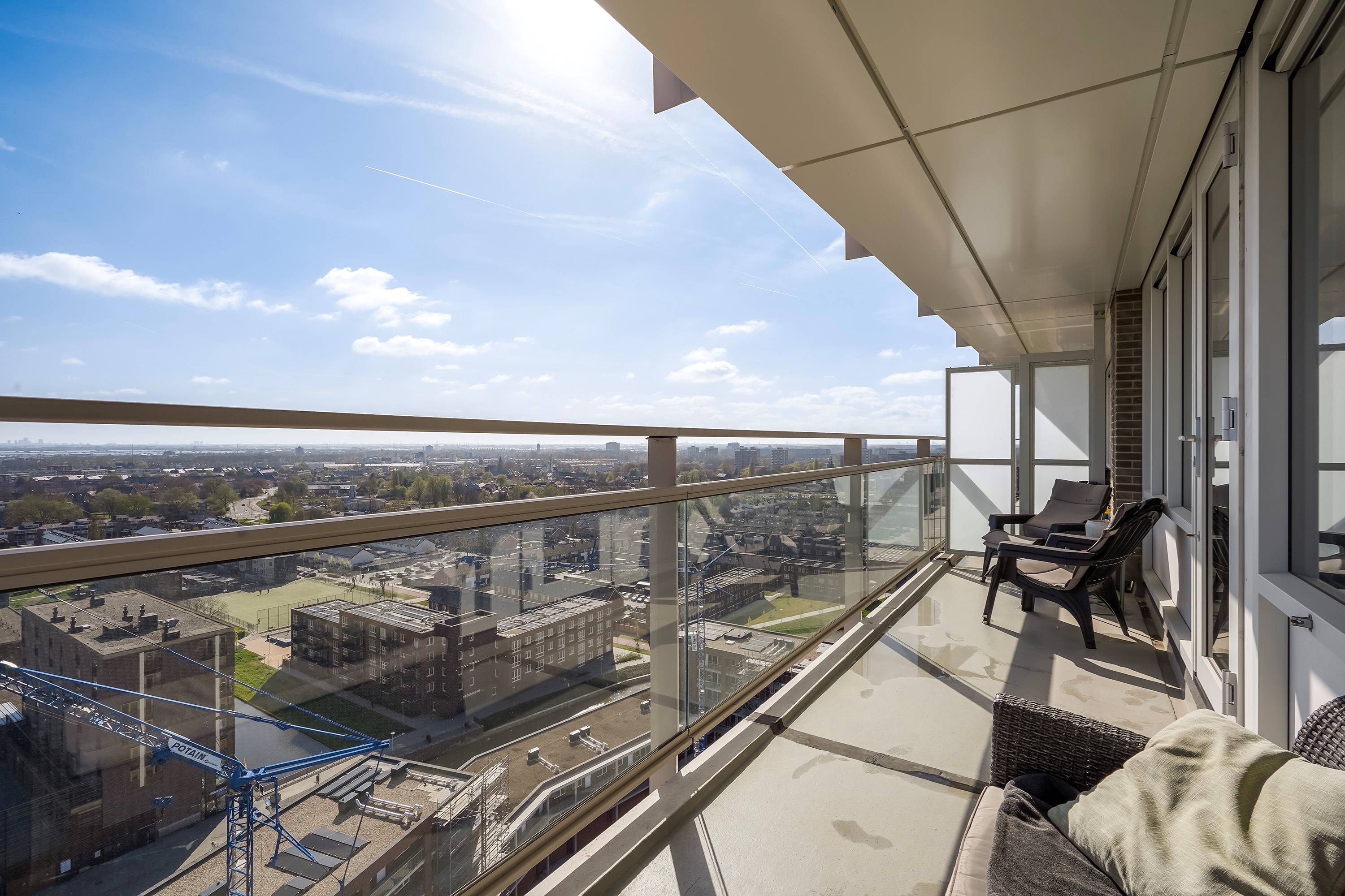 Bij helder weer kunt u zo de skyline van Den Haag en Rotterdam zien, dit prachtige uitzicht is fenomenaal en kunt u dus iedere dag van genieten.