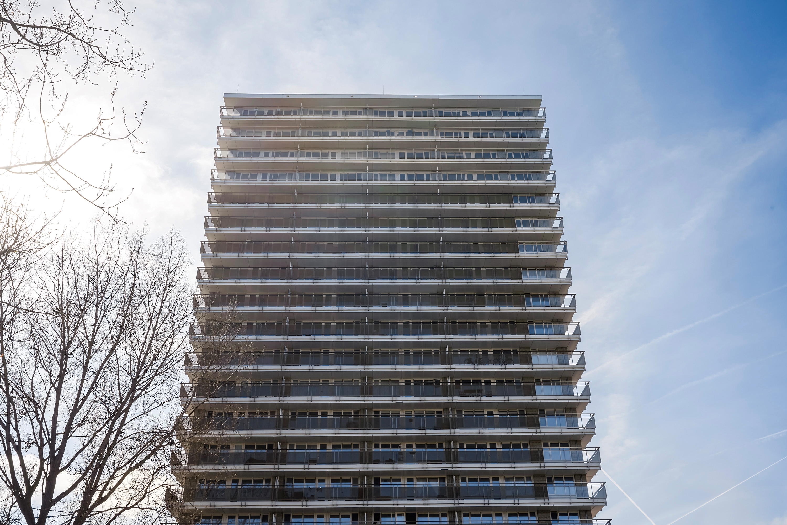 Onlangs uitgevoerde werkzaamheden: nieuwe kunststof kozijnen met triple glas, 80 zonnepanelen geplaatst voor collectief gebruik, isolatie van de gevels, betonherstel en alle balkondeuren zijn vervangen.