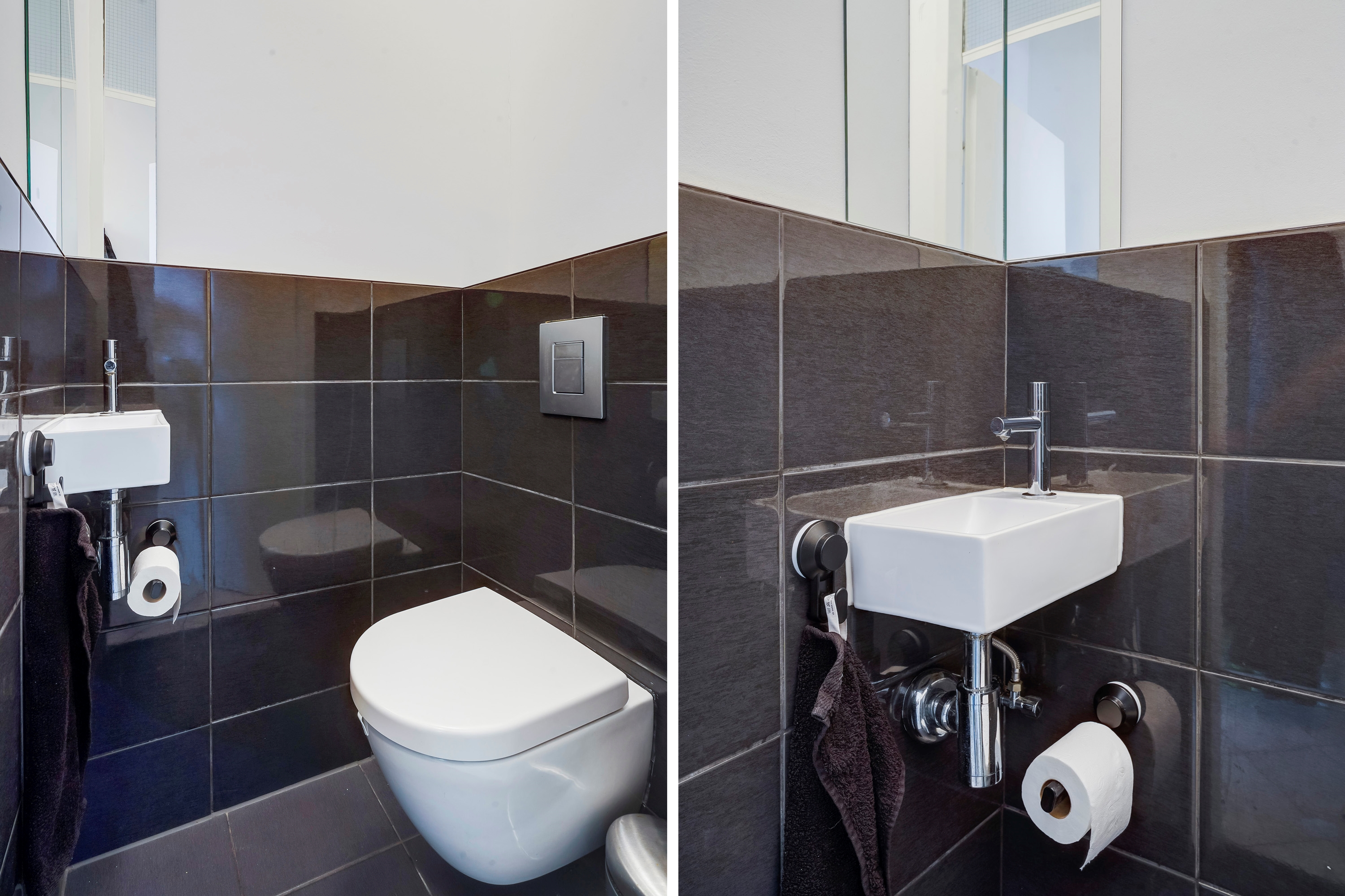 Na binnenkomst van de woning treffen we de ontvangsthal. In de ontvangsthal is de toiletruimte gesitueerd, welke is voorzien van een hangend toilet, inbouwreservoir, wasbak met fontein en afzuiging. De toiletruimte is vernieuwd in 2015. In de hal is ook de meterkast gesitueerd.