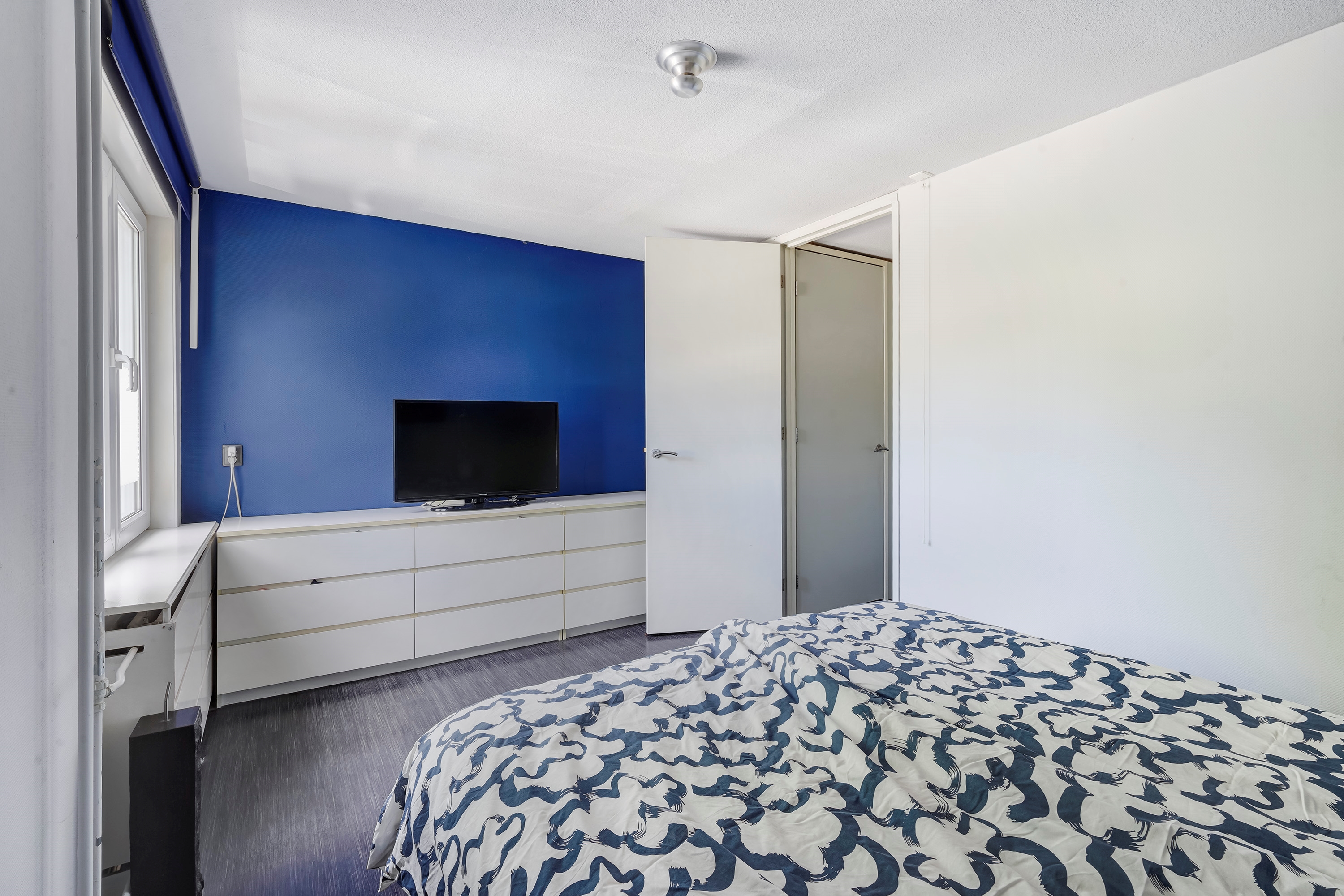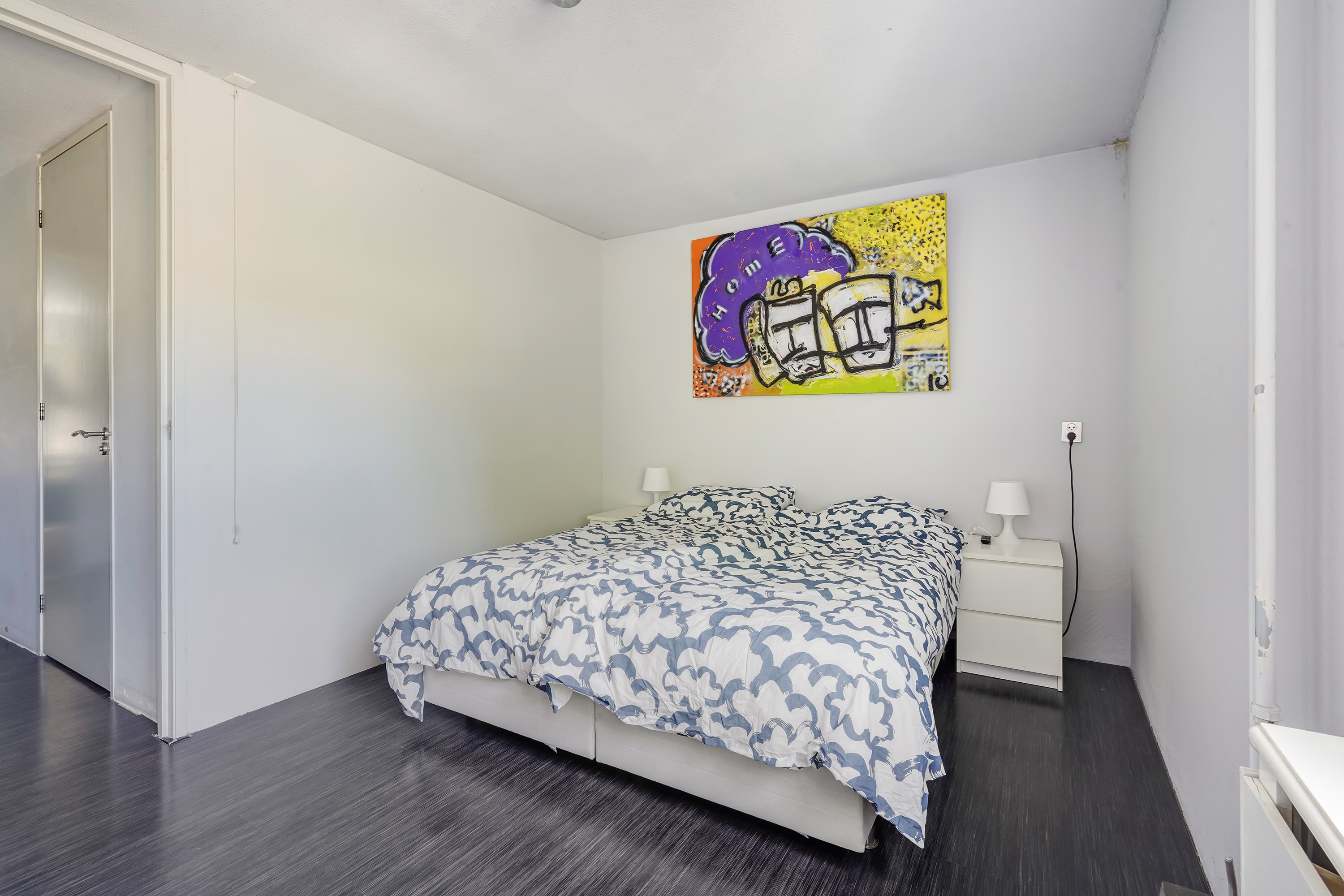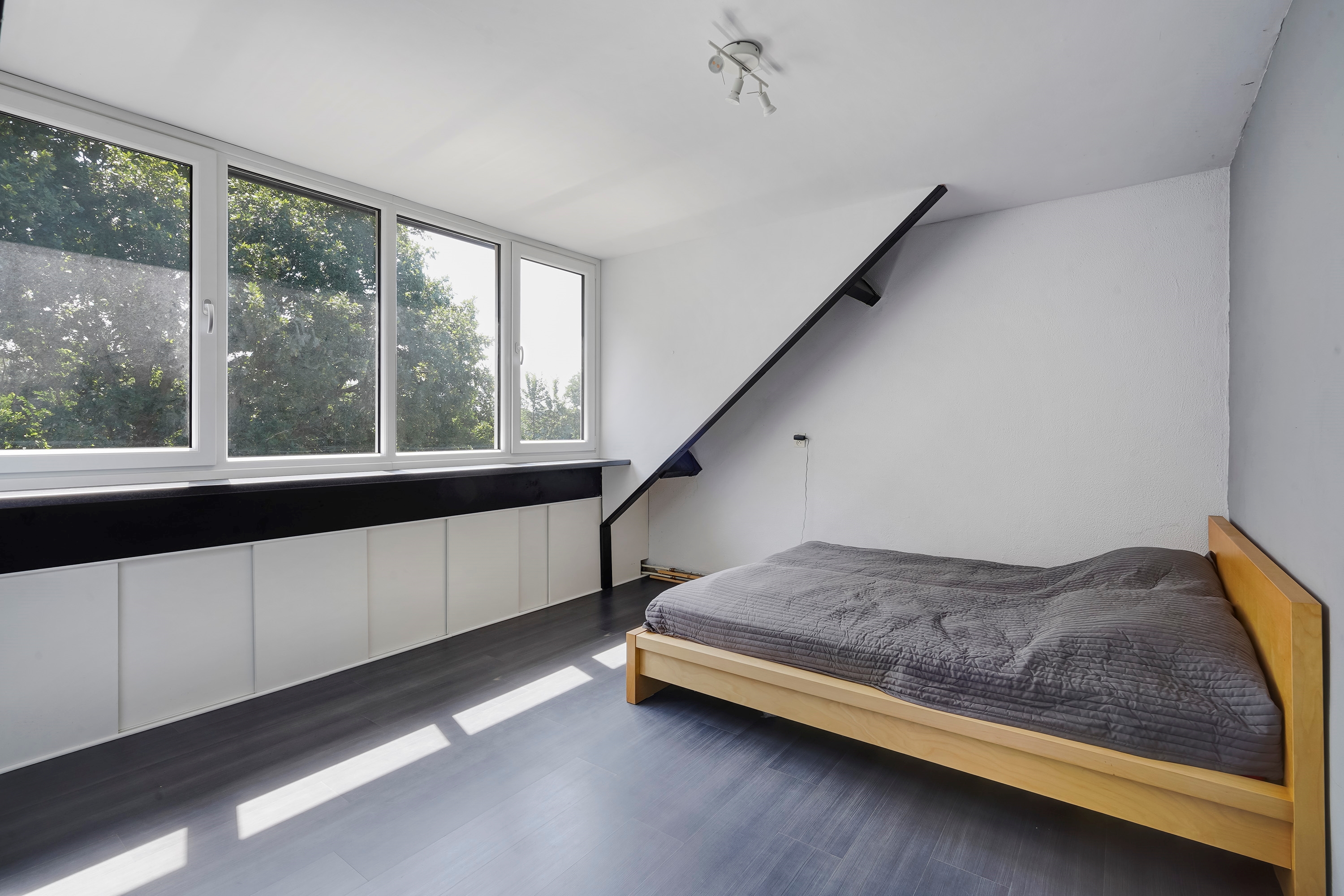 De eerste slaapkamer is gelegen aan de voorzijde van de woning en is over de gehele breedte van de woning, waardoor de slaapkamer zeer ruim is.