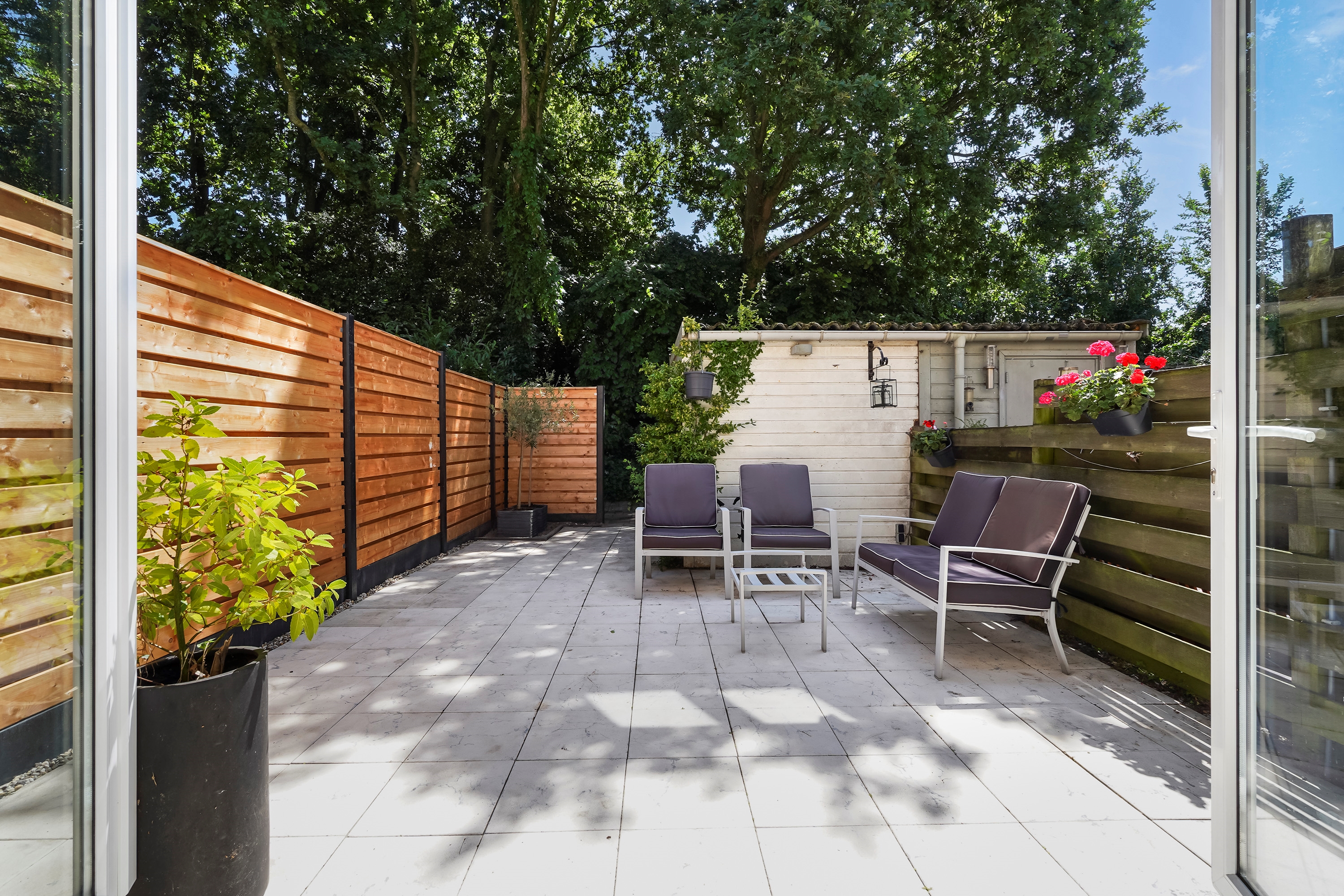De zonnige achtertuin is de ideale plek om te genieten van de zon en frisse lucht. Hier kun je heerlijk barbecueën, tuinieren of gewoon relaxen met een goed boek. Je eigen stukje groen in de stad!