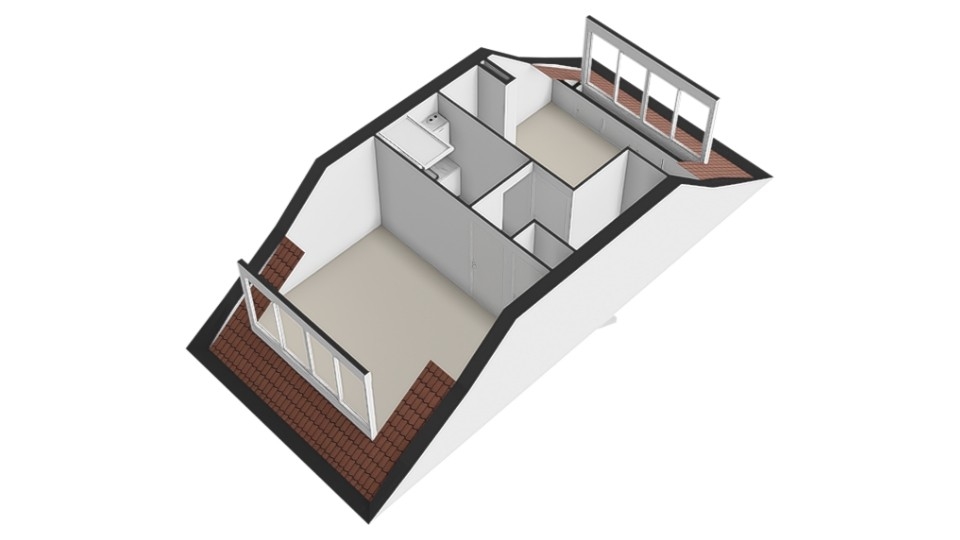 De tweede verdieping is een zolderverdieping. Aan zowel de voor- als de achterzijde zijn grote dakkapellen geplaatst. Hierdoor is er veel ruimte beschikbaar. Er zijn aan voor- en achterzijde 2 grote slaapkamer gecreëerd, met de nodige opbergruimte. Beide kamers zijn over de gehele breedte van de woning en zijn voorzien van rolluiken en kunststof kozijnen met dubbel glas.