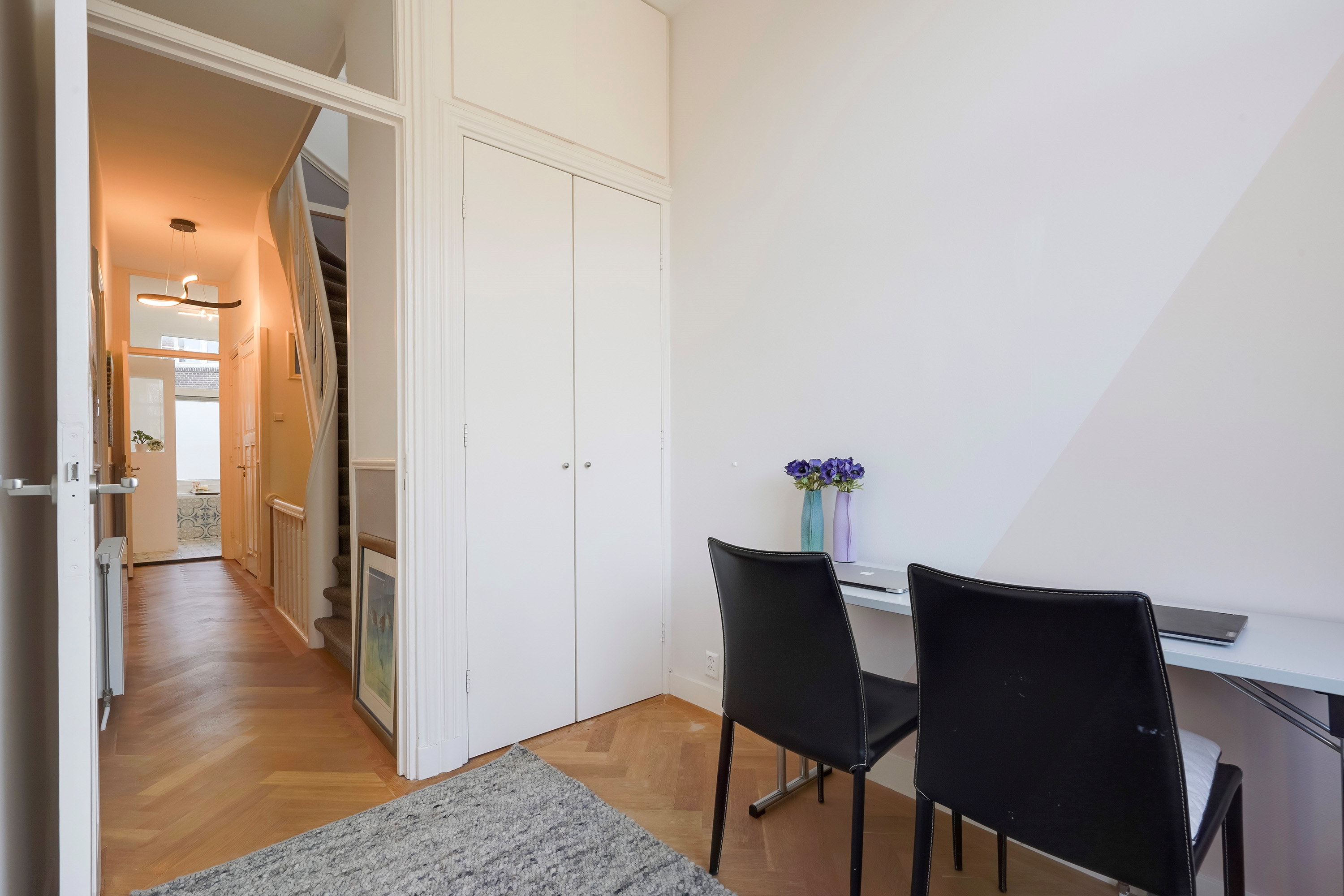 Zeer goed onderhouden herenhuis (189 m²) in het gewilde Statenkwartier is gelegen aan een rustige en ruime straat met vrij uitzicht aan de voorkant over bomen en kanaal. Deze lichte woning van 3 verdiepingen heeft 7 kamers, waarvan 5 slaapkamers, een sfeervolle tuin en een zonnig dakterras. De woning is in 2021 grotendeels gerenoveerd met behoud van veel originele details,