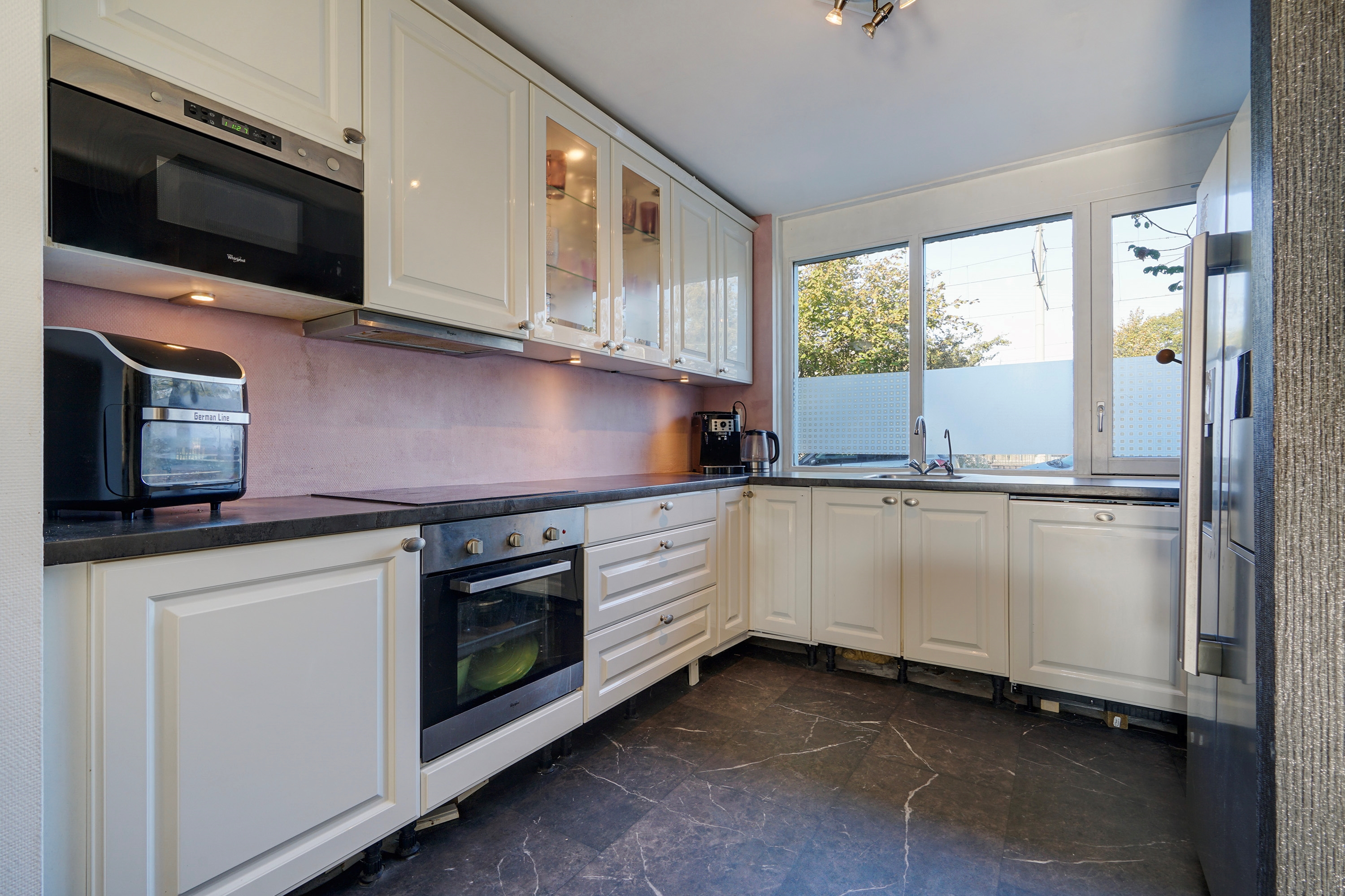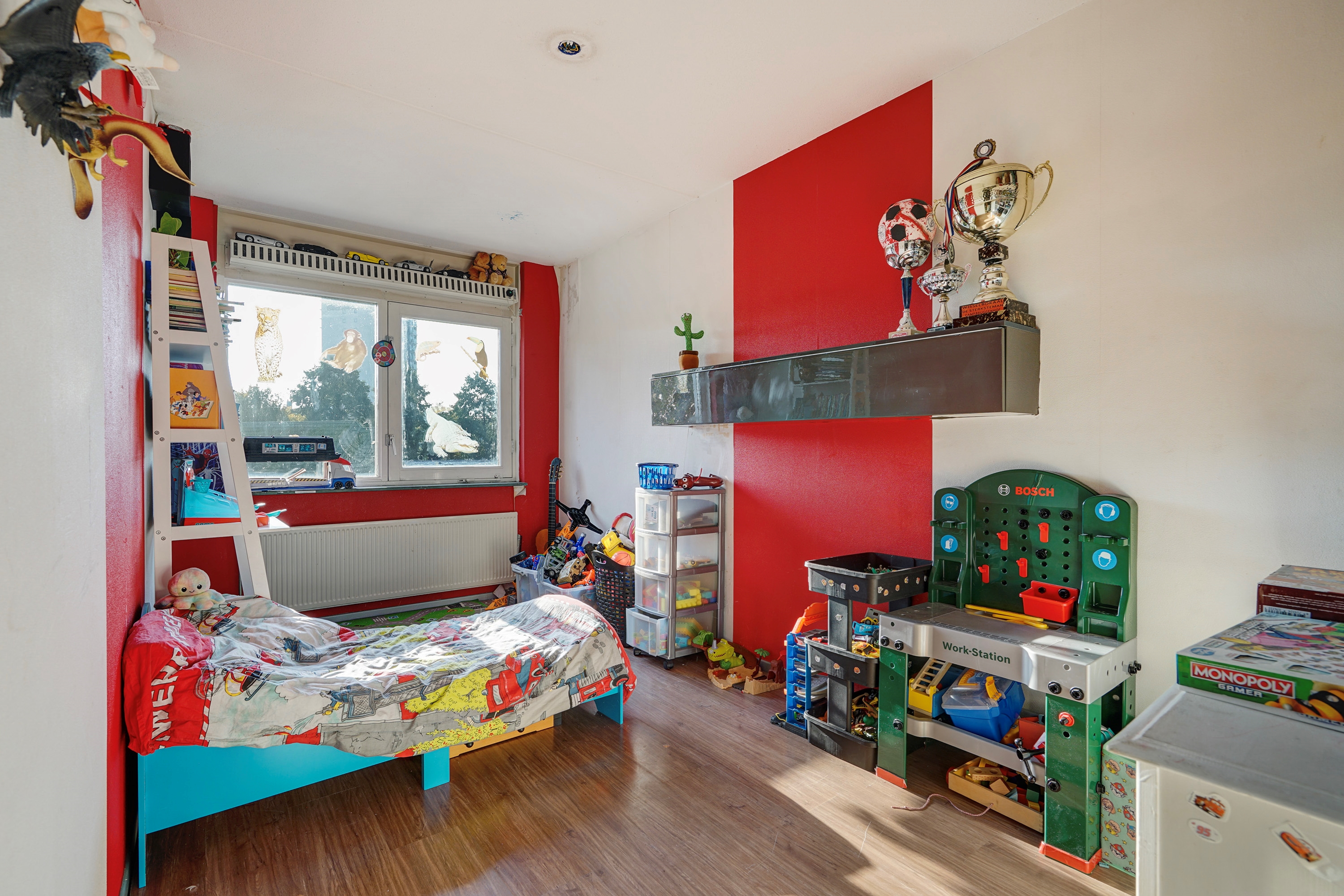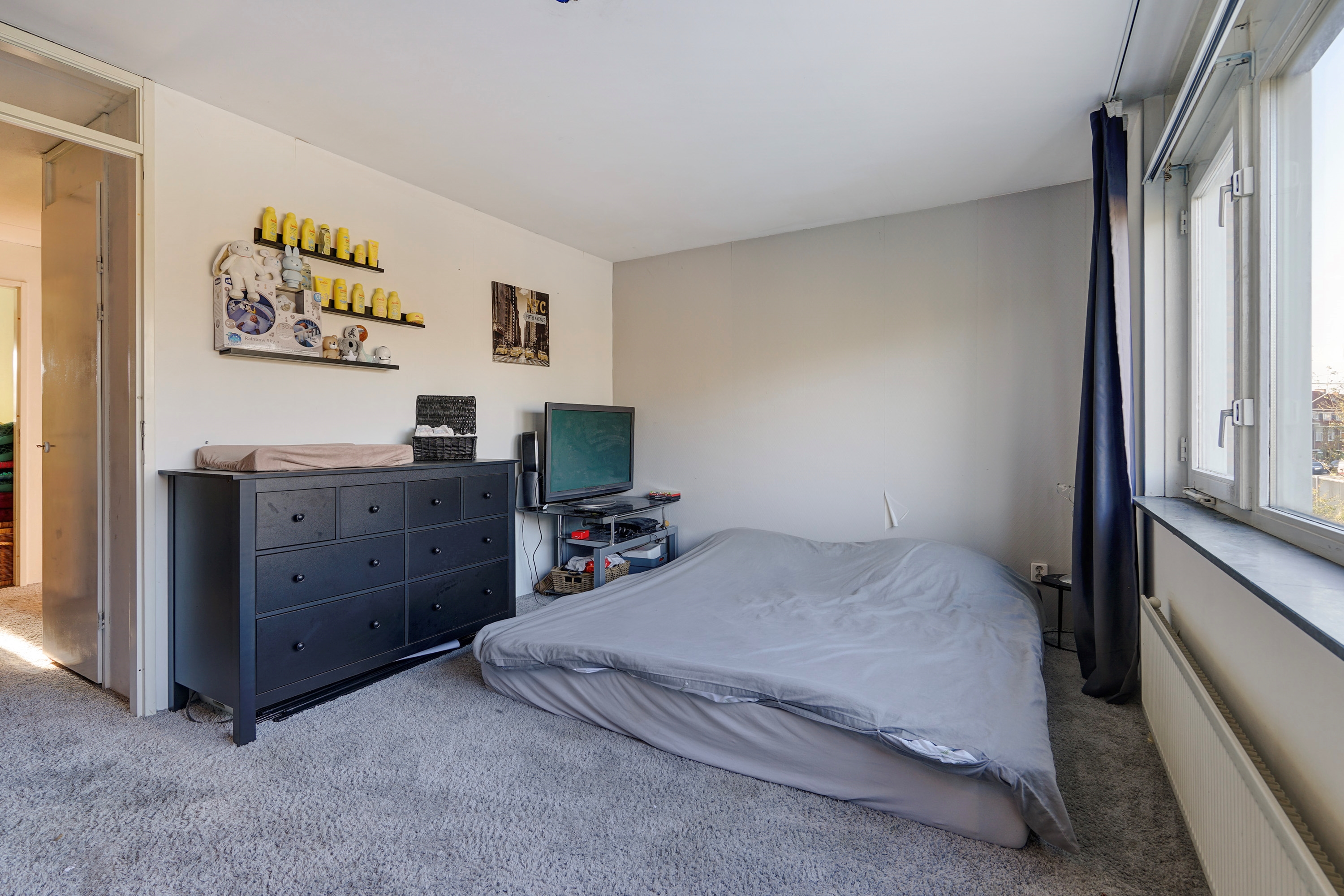 de woning is voorzien van een ruime woonkamer met zonnige achtertuin, 3 slaapkamers, badkamer en keuken.